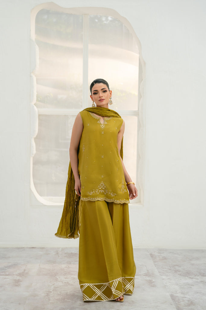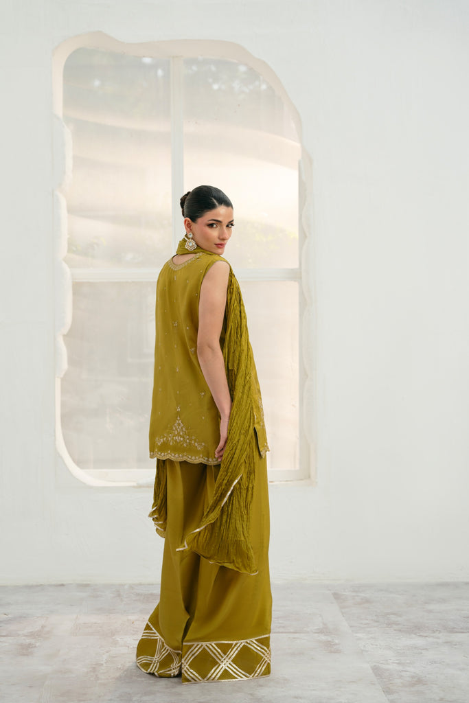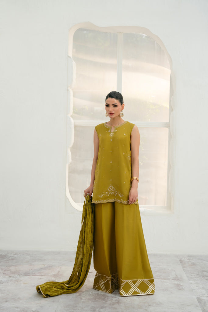 Discover Agha Noor's wedding wear created with utmost detailing alongside immaculate tailoring. A canvas of stunning korean silk, with alluring zari and sequins details. Styled with a soft pure organza dupatta and lzaar as seen.
